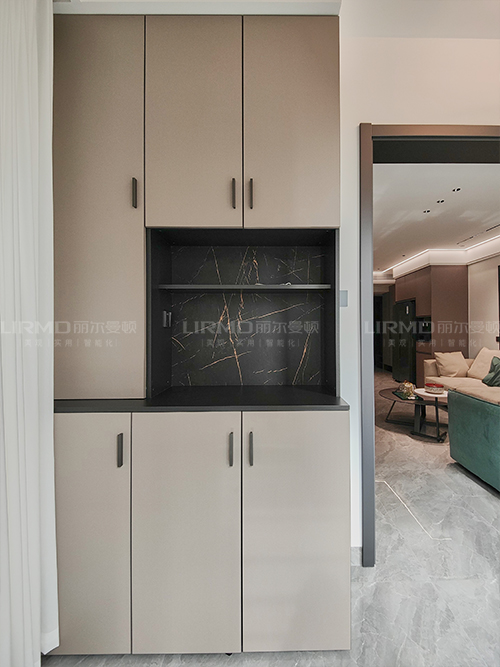 嵌入式餐邊柜開放格玻璃柜門相互搭配,質(zhì)感滿滿。