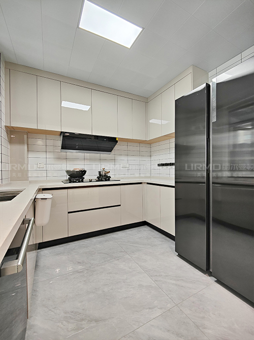 櫥柜選用高光柜門(mén),抗手印耐油污,還可以增加廚房亮度顯寬敞