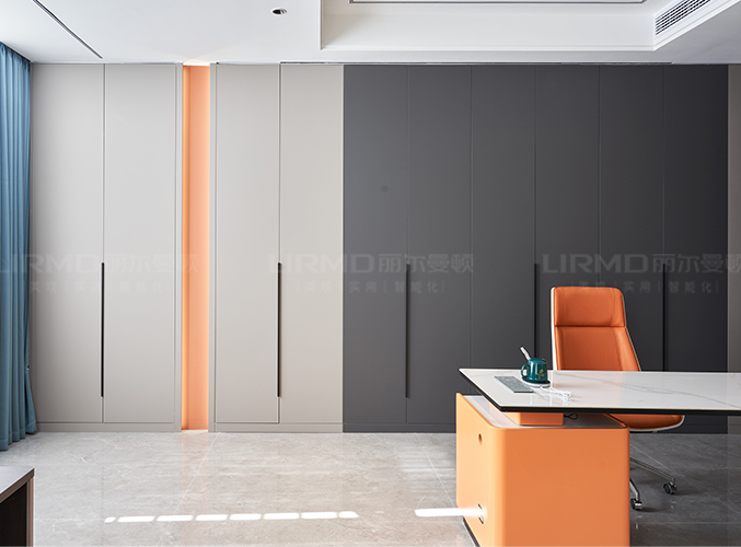 整墻定制拼色柜子,錯(cuò)落有致,線條硬朗,高級(jí)感滿滿。