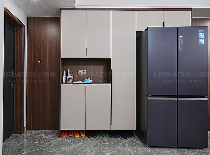 入戶玄關柜,可作為鞋柜/衣柜/收納區(qū),淺色柜門加深色柜體的碰撞,視覺效果更好,