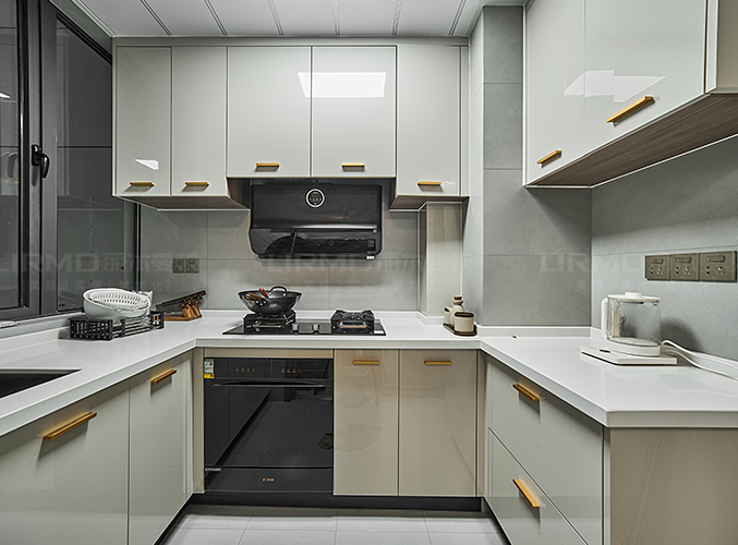 立面簡致,紋理細(xì)膩,上下方都有收納柜,視覺層次更加豐富。
