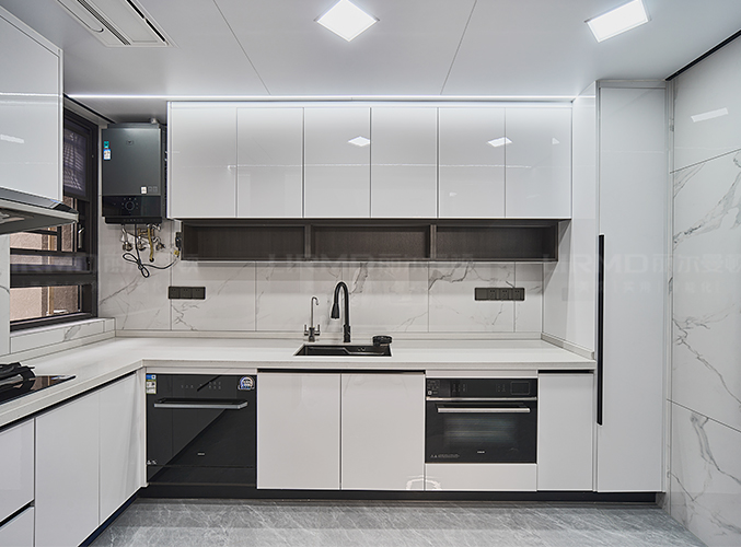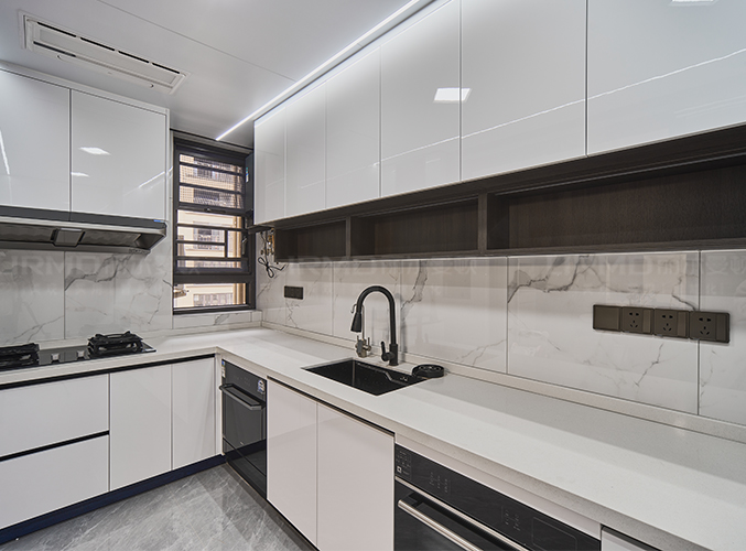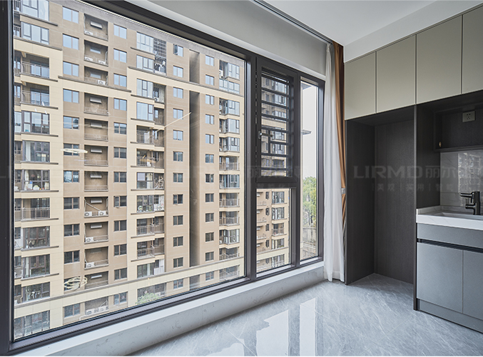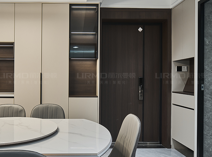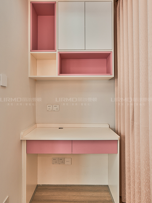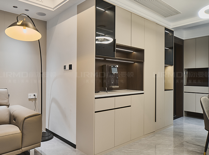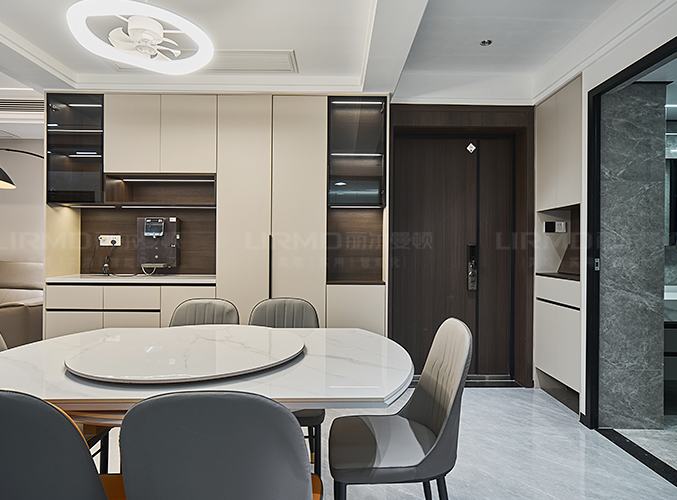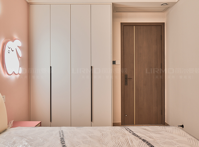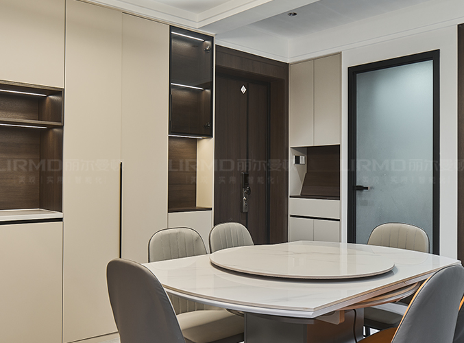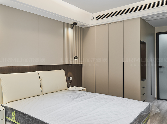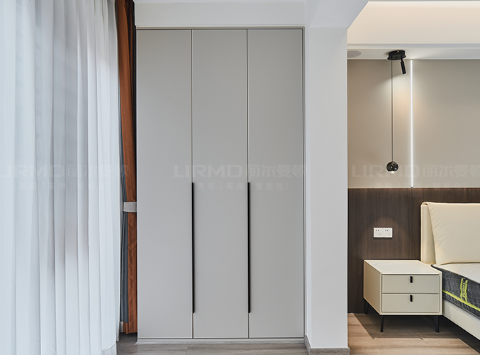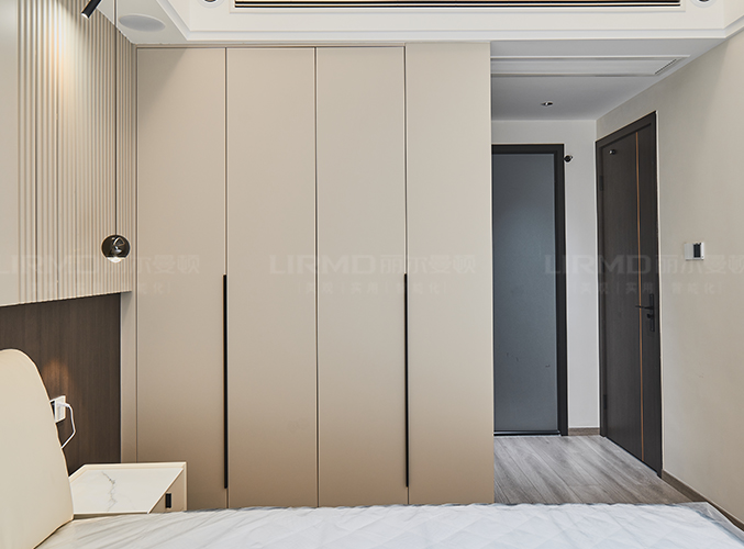 柜子一門到頂設(shè)計,實木柜體搭配PET膚感柜門,整體風(fēng)格與軟裝更加統(tǒng)一。