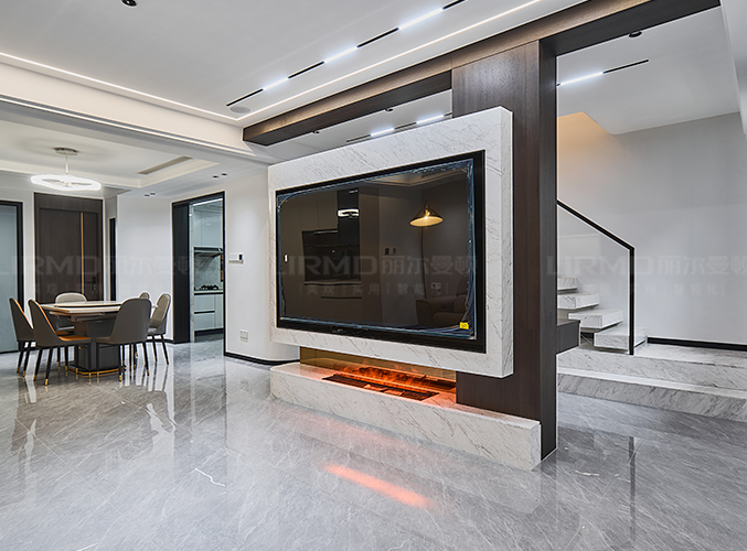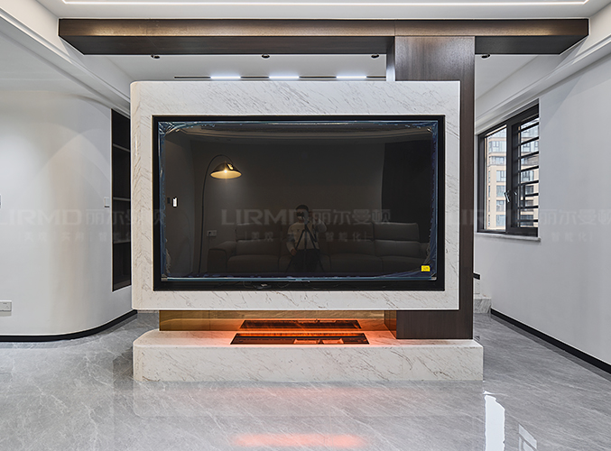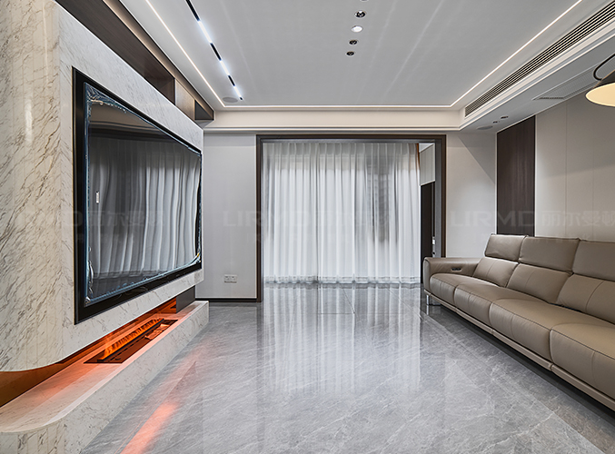 全屋瓷磚通鋪,顯大顯明亮,采光好,內(nèi)嵌式電視背景墻設(shè)計,方便實用。