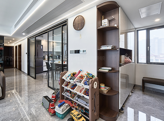 柜體底部挑空放置當(dāng)天所穿的鞋子,中間開(kāi)放格放置鑰匙或者包包等