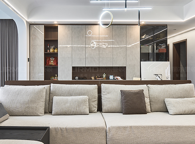 橫廳搭配全景落地窗,極簡(jiǎn)又顯高級(jí),電視背景墻采用整面墻做儲(chǔ)物柜設(shè)計(jì),整體效果不顯沉悶,