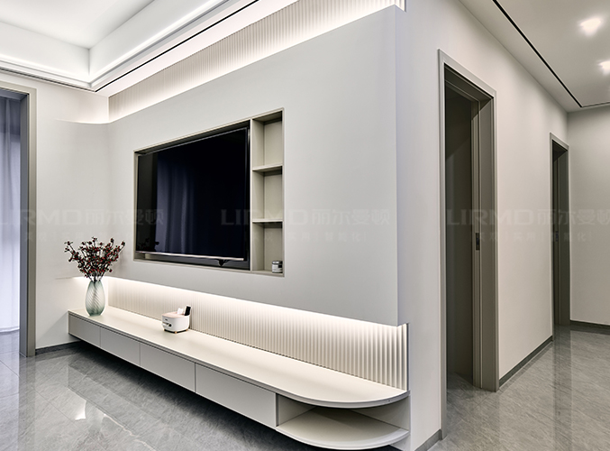 更顯極簡。左側(cè)玻璃展示柜柜門的設(shè)計更具設(shè)計感。