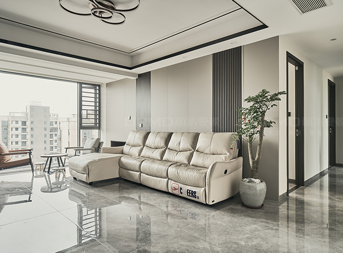 電視背景墻做內(nèi)嵌式設(shè)計(jì),不占空間,右邊搭配柜子,收納更加方便。
