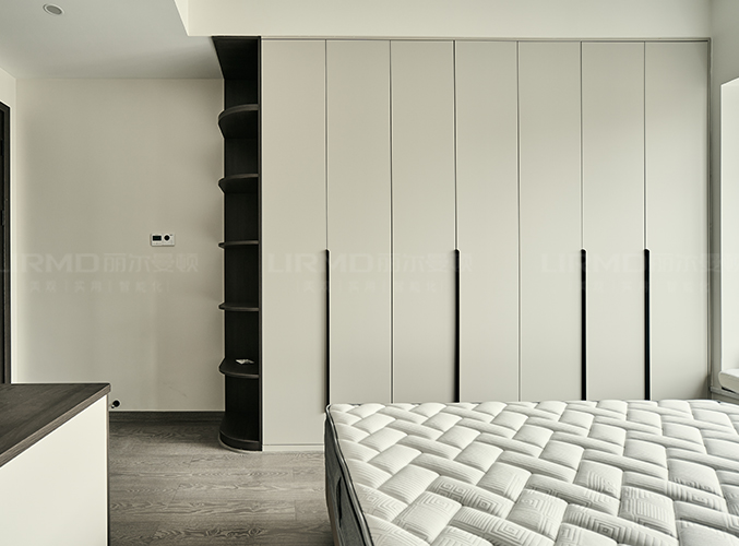 一整排柜子視覺(jué)效果美觀且大氣,柜子左側(cè)做一個(gè)圓弧角處理,可以擺放綠植等物品,