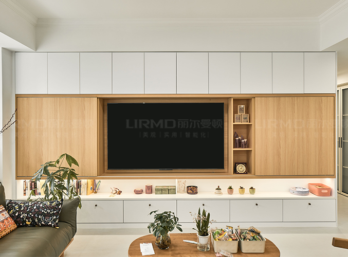擺件,與嵌入式電視柜融為一體,協(xié)調(diào)相稱,使得整個(gè)空間簡(jiǎn)約又高級(jí)。
