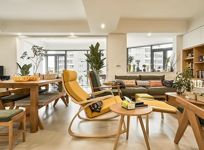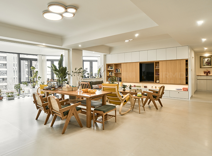 整屋大白墻,柔光瓷磚通鋪,空間大,采光好,可以放置各種綠植,電視背景墻設(shè)計(jì)幾盒壁龕放置