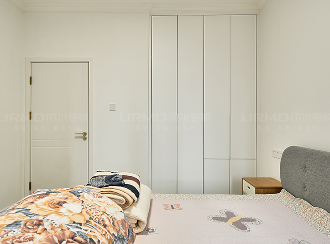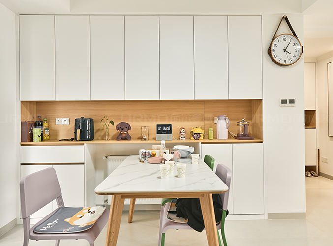 整體的墻柜很好的利用空間,收納大大的提升,無拉手設(shè)計(jì),更顯極簡(jiǎn)。