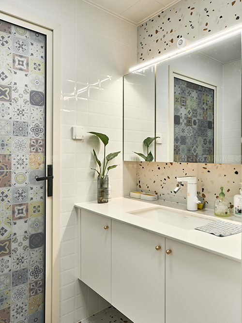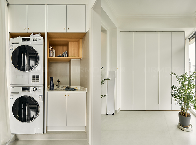 陽臺(tái)采光好,內(nèi)嵌式洗衣機(jī)設(shè)計(jì),加上洗漱柜設(shè)計(jì),不占空間,一門到頂柜子設(shè)計(jì),盡顯大氣。