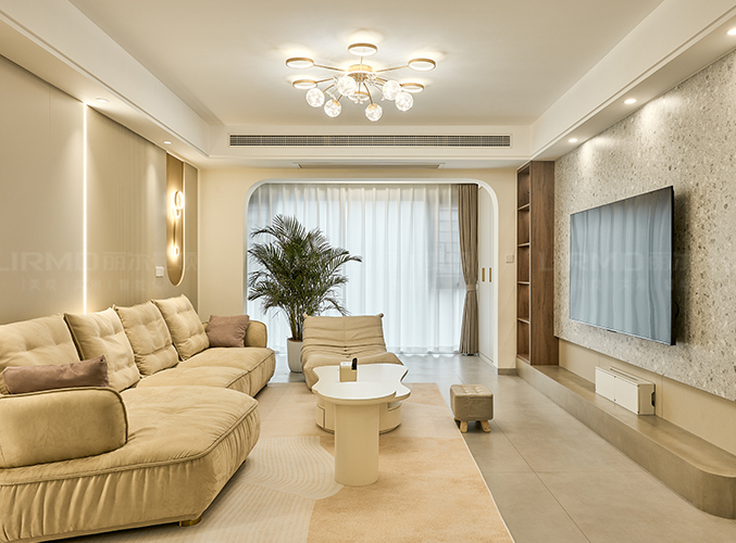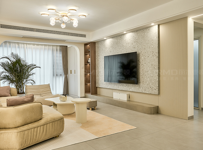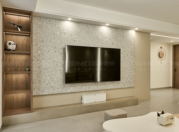 電視背景墻整墻設計,左側(cè)柜子可以放置小物品和喜歡的綠植。