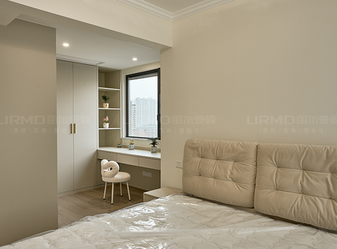 整體顏色統(tǒng)一,美觀且大氣,衣柜書桌一體化設計,學習辦公兩不誤。