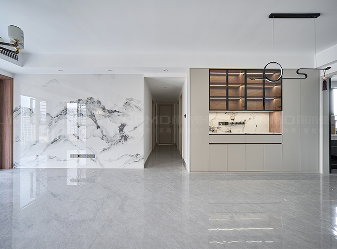 整墻做內(nèi)嵌電視背景墻,不占空間,吊燈設(shè)計(jì),增強(qiáng)照明實(shí)用性的同時(shí)又增貼了空間藝術(shù)感,