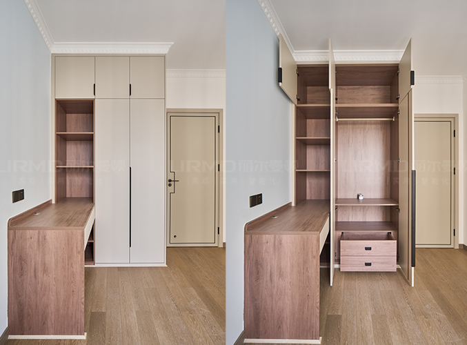 18mm厚杉木芯板,淺色柜門(mén)加深色柜體的碰撞,視覺(jué)效果更好,下方懸空設(shè)計(jì),好放置鞋子,