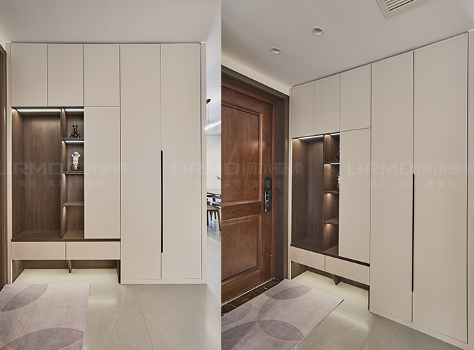 18mm厚杉木芯板,淺色柜門(mén)加深色柜體的碰撞,視覺(jué)效果更好,既能坐下?lián)Q鞋
