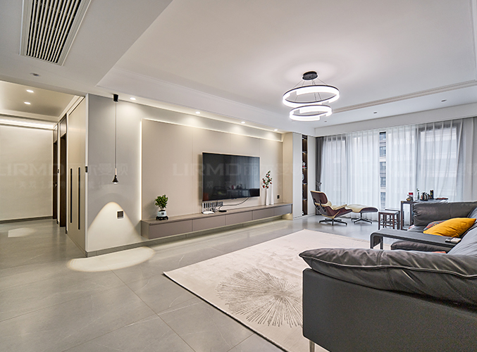 吊燈設(shè)計(jì),增強(qiáng)照明實(shí)用性的同時(shí)又增貼了空間藝術(shù)感,灰色系色調(diào)搭配溫暖的燈光