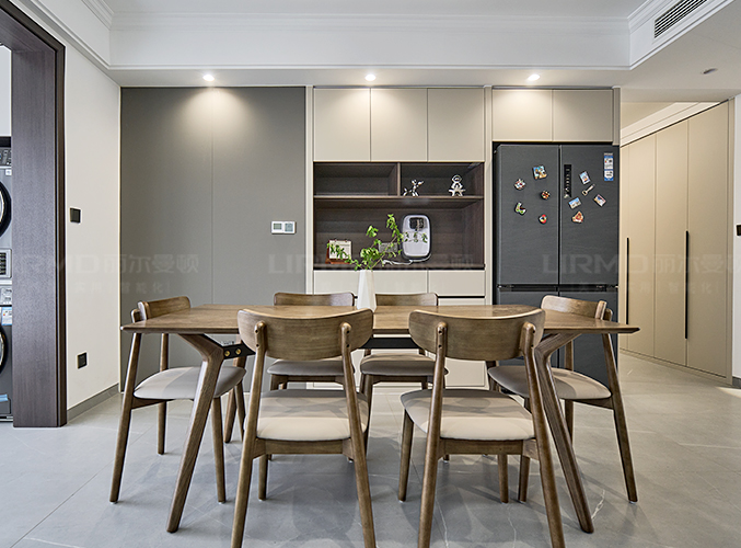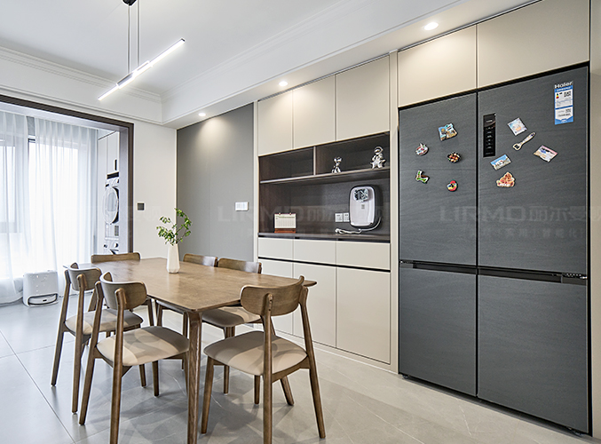 無(wú)拉手設(shè)計(jì),更顯極簡(jiǎn),內(nèi)嵌式冰箱設(shè)計(jì),不占空間。