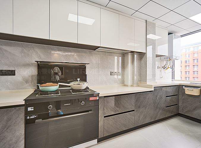 上下方都有收納柜,視覺(jué)層次更加豐富,搭配大理石臺(tái)面美觀又實(shí)用。