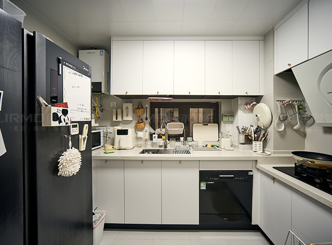 18mm厚杉木芯板,入戶與廚房用滑軌玻璃門隔開,空間更通透,