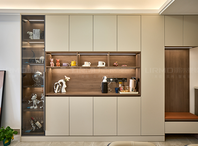 多功能餐邊柜留有換鞋區(qū)和掛衣區(qū),進(jìn)去更方便,中間位置做開放格,可放置更多物品,