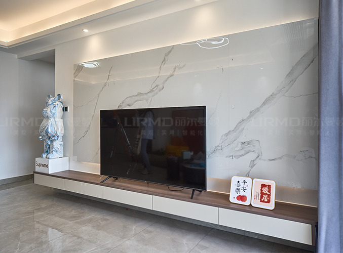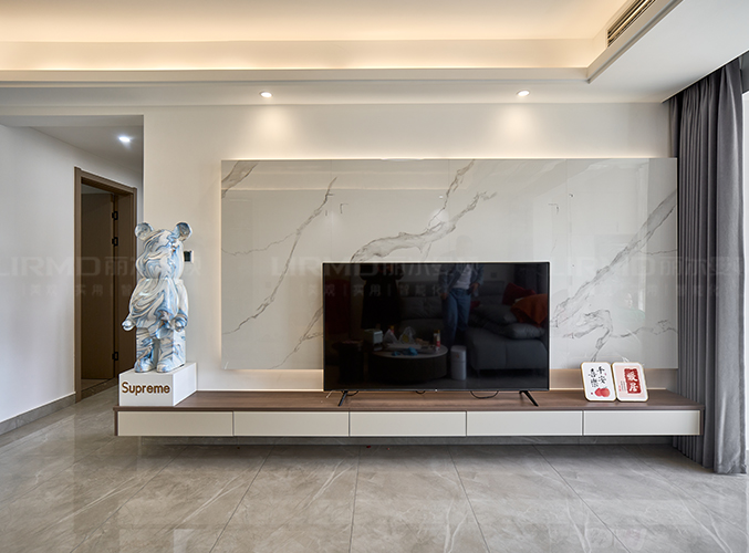 整屋通鋪瓷磚,盡顯大氣,電視懸浮柜下方留有掃地機(jī)器人位置,方便打掃無死角。