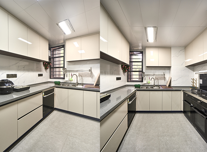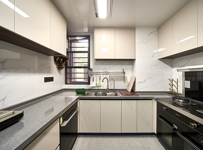 上下方都有收納柜,視覺層次更加豐富,搭配大理石臺(tái)面美觀又實(shí)用。