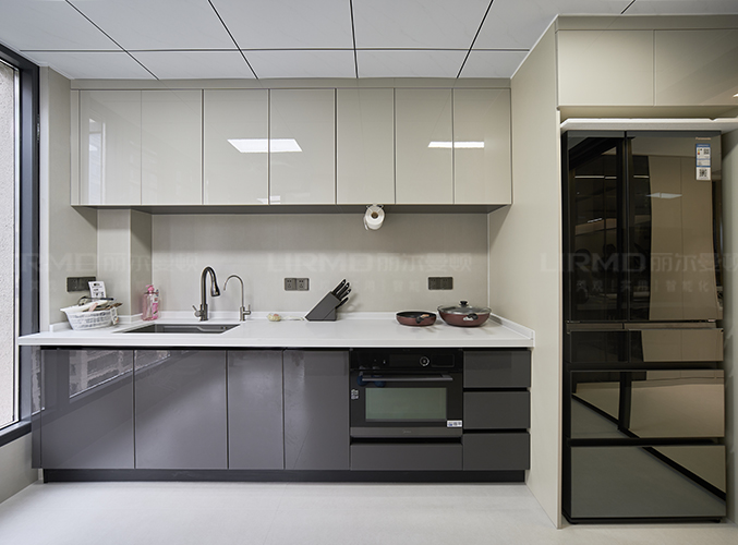 上下方都有收納柜,視覺(jué)層次更加豐富,搭配大理石臺(tái)面美觀又實(shí)用,內(nèi)嵌式冰箱不占空間。