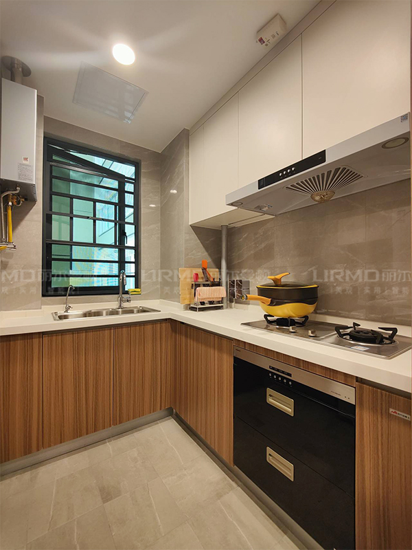全房共定制了8個柜子,柜體采用足18厚杉木芯板,柜門采用LSB板PET膚感柜門,一門到頂,五金使用原裝進口的百隆五金