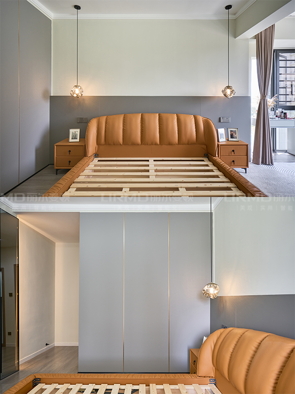 柜體采用足18厚杉木芯板,柜門采用LSB板PET膚感柜門,一門到頂,五金使用原裝進(jìn)口的百隆五金