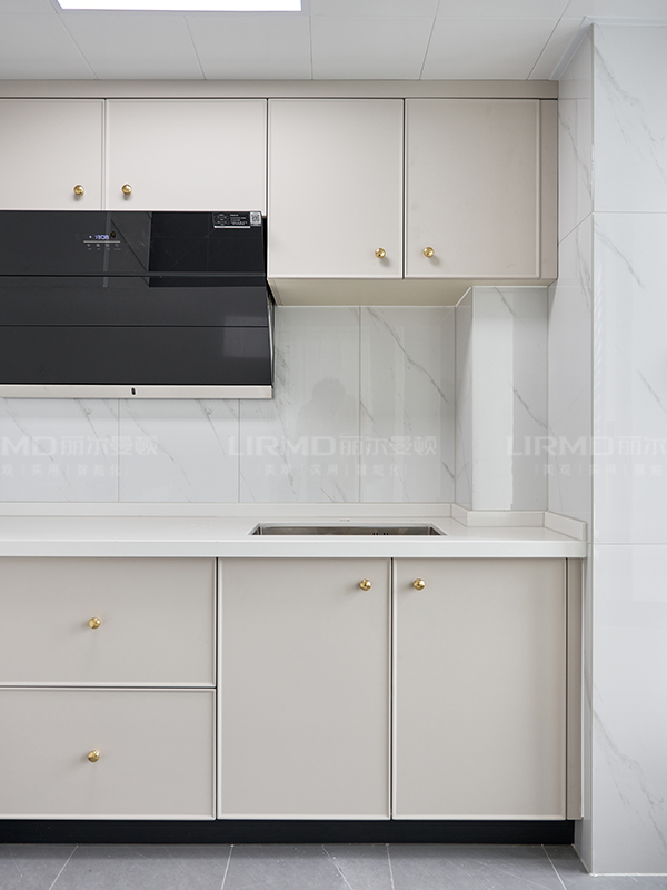 象牙灰的柜門與玻璃柜門的碰撞,更顯精致與優(yōu)雅