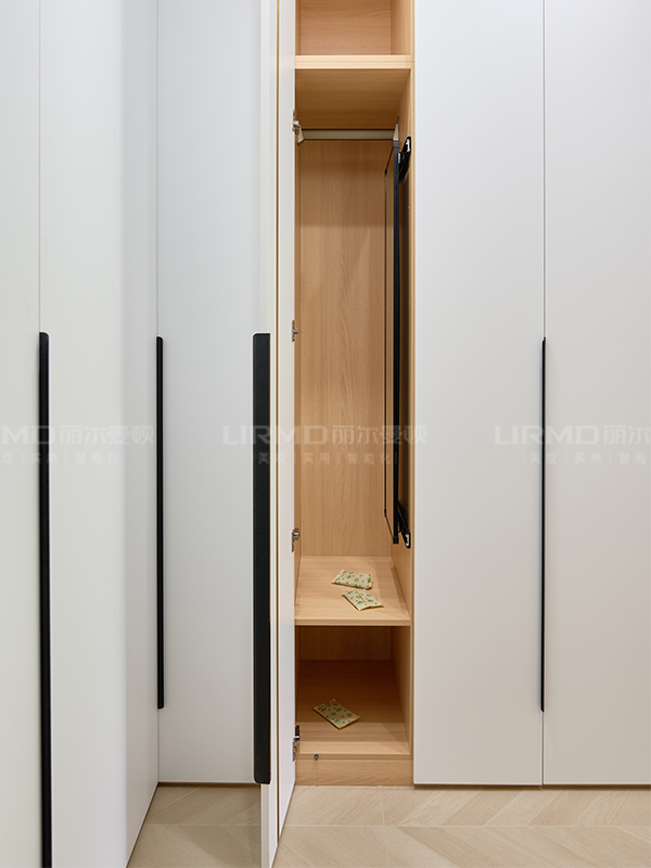 柜門做的是長(zhǎng)拉手設(shè)計(jì),這樣的設(shè)計(jì)既凸顯了衣柜的整體美感,又方便了你的日常使用,時(shí)尚與便捷盡在掌握。