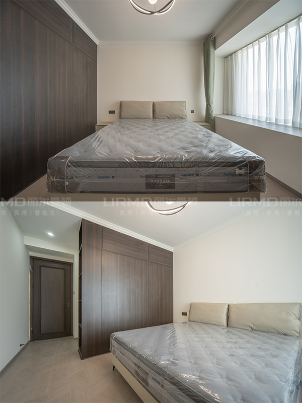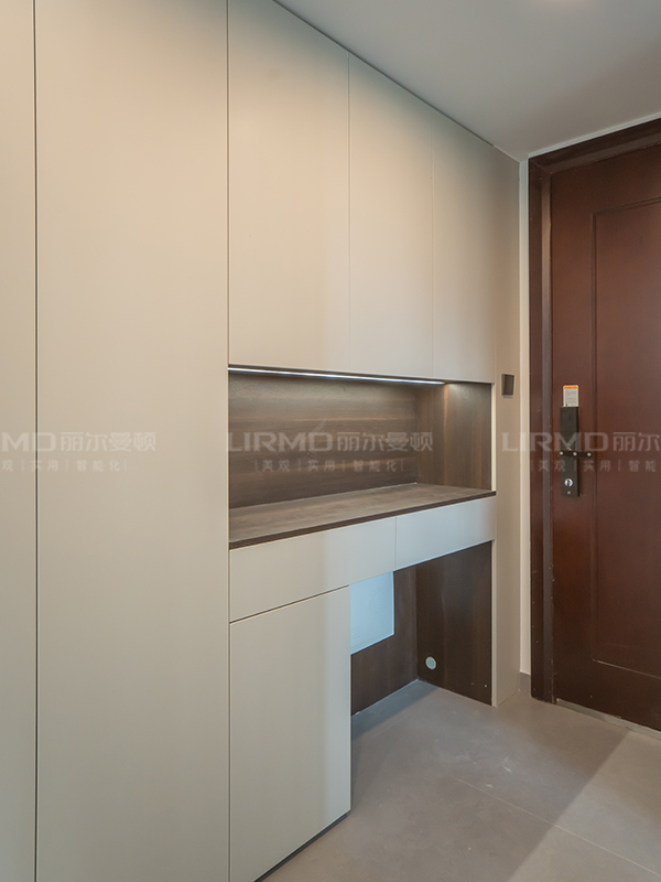 主臥衣柜、次臥衣柜、小孩房衣柜、小孩房書(shū)桌、兩個(gè)定制浴室柜,以及同色墻板、同色到頂房門(mén))