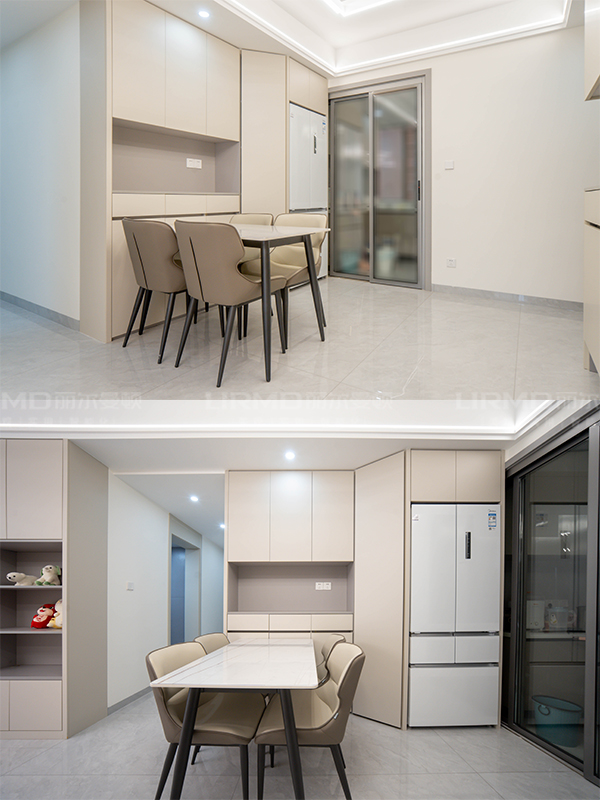 入戶玄關(guān)柜+餐邊柜+嵌入式冰箱柜+櫥柜+電視機(jī)柜+沙發(fā)背景墻