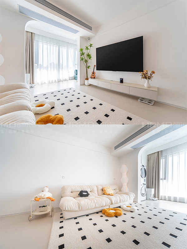 奶油風推崇肌理感強,柔軟、舒適、細膩的。比如羊毛地毯、亞麻沙發(fā)畫、棉麻窗簾等都是不錯的選擇。