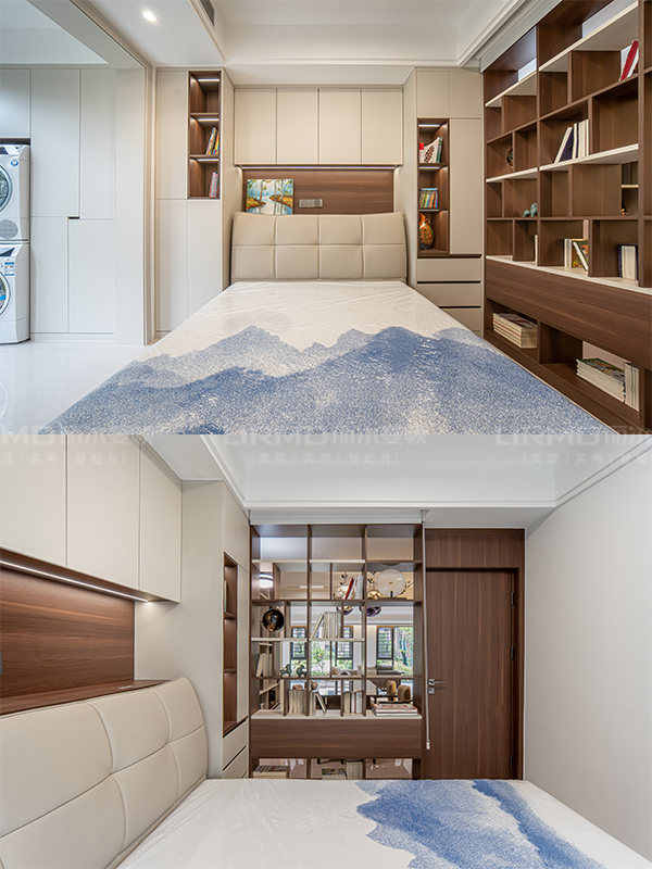 全屋定制:柜體18厚杉木芯板、歐松板膚感柜門、進口百隆五金