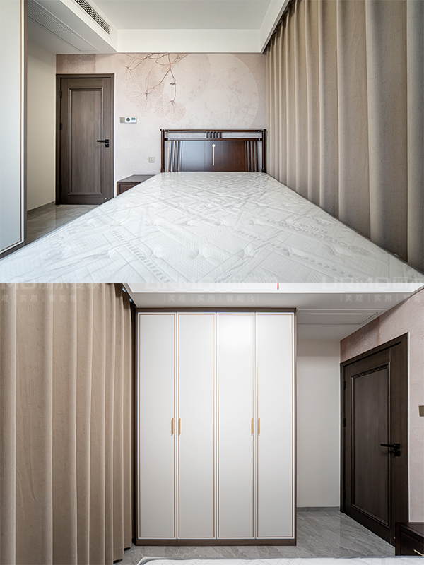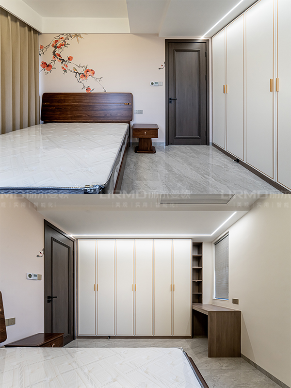 長沙靠譜裝修公司,長沙靠譜全屋定制,臥室衣柜加梳妝臺,新中式風(fēng),