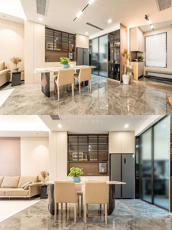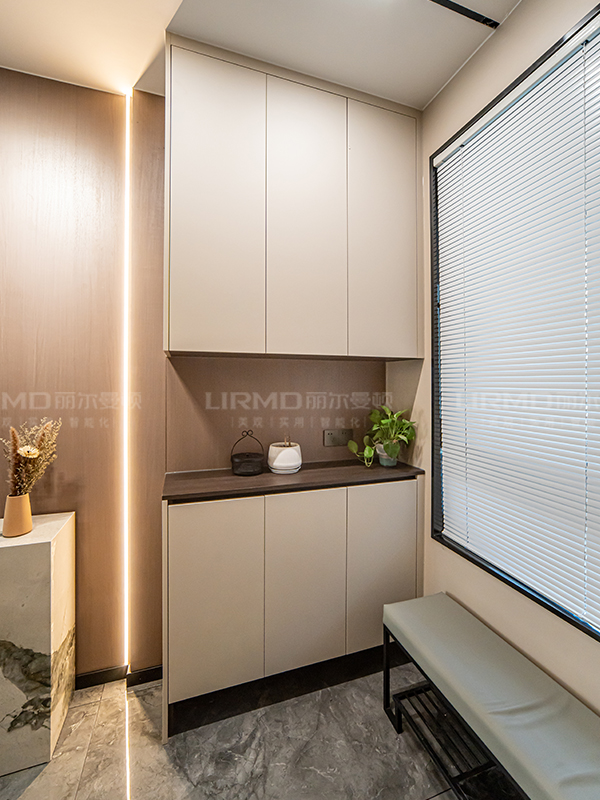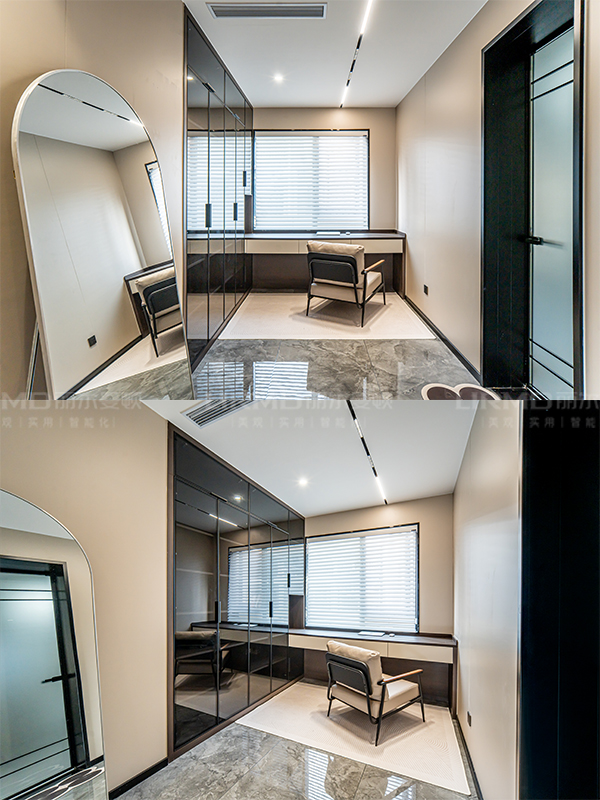 門墻柜一體化設(shè)計(jì),打造全屋同款同色同造型,木飾面的融入,整體性真的絕