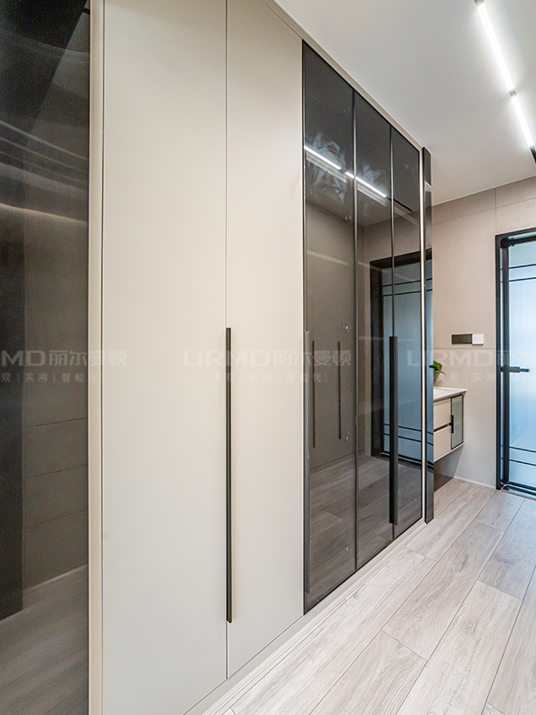 全屋高端定制:柜體板材18厚杉木實(shí)芯板,柜門有pet膚感、高光、超晶、五金使用原裝進(jìn)口奧地利百隆五金