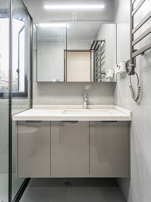 柜體:煙熏尤加利 柜門(mén):水泥灰