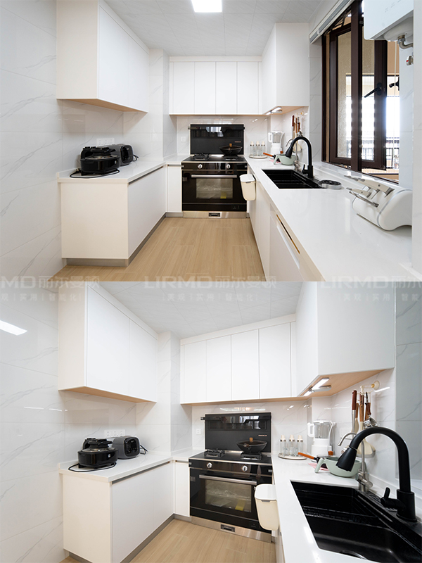 高端全屋定制:柜體板材為十環(huán)認(rèn)證的萬(wàn)象天冠18mm厚杉木芯板、柜門(mén)是歐松板雙飾面門(mén)、奧地利進(jìn)口百隆五金。