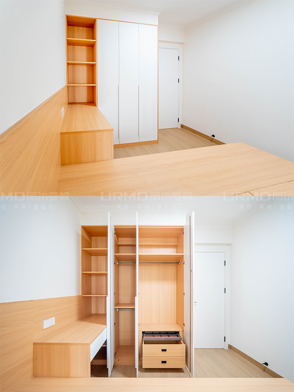 主臥做衣帽間調(diào)整原有布局,改善床對(duì)廁所的尷尬。?