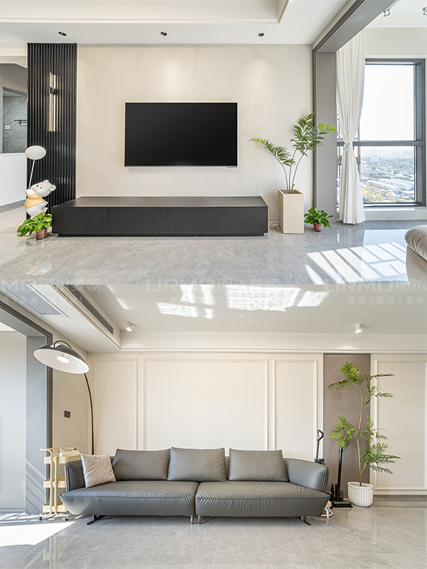 整體黑白灰的配色貫穿整體空間,簡單干凈,空間統(tǒng)一性更強