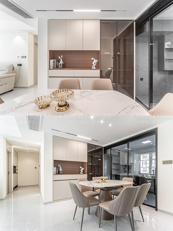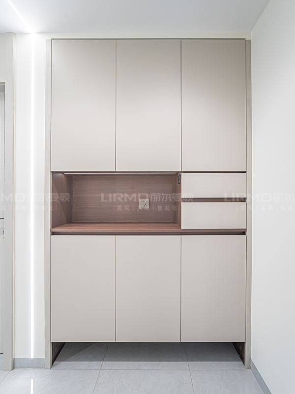 選擇門墻柜一體設(shè)計,使得空間得到充分的利用,從而提高了空間利用率和使整體風(fēng)格保持一致。