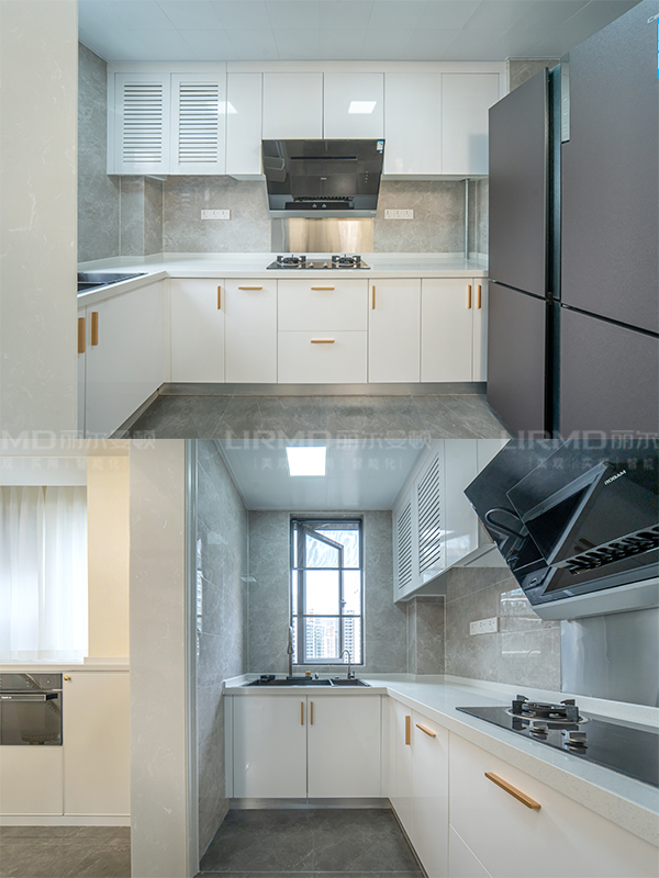 L型櫥柜+主臥室滿墻衣柜+L型衣柜+玻璃隔斷