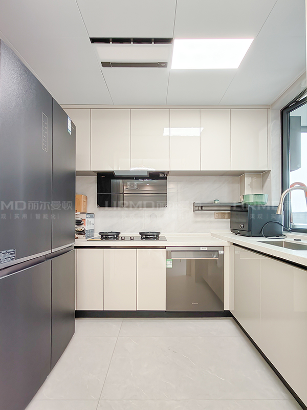 采用弧形門洞,廚房門吊軌帶弧形,整體線條顯得更靈動