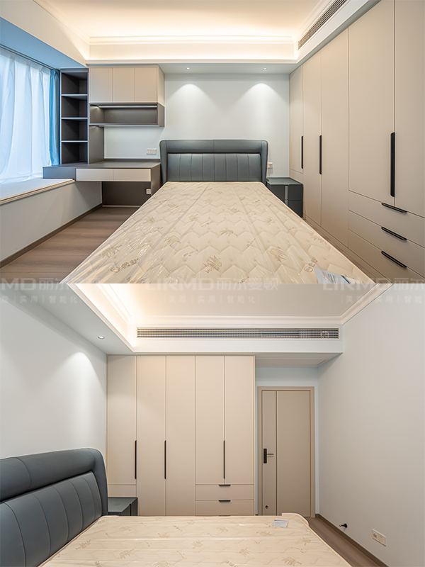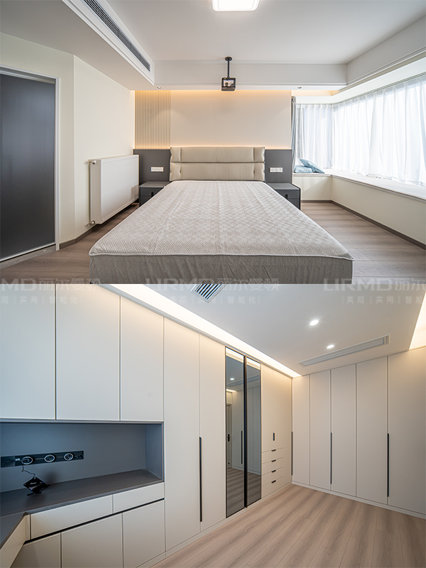 長沙靠譜裝修公司,長沙靠譜全屋定制,臥室衣柜加梳妝臺,現(xiàn)代簡約風,