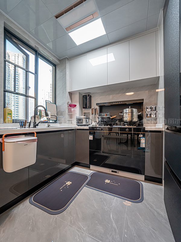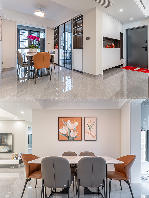 全屋1500×750柔光瓷磚,整體通透大氣,清潔方便,一字柜搭配玻璃柜,更得輕盈通透,滿(mǎn)滿(mǎn)的高級(jí)感