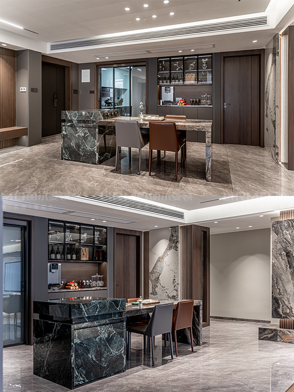 客廳餐廳茶吧一體設(shè)計(jì),提升空間通透性與開(kāi)放度,讓空間更具和諧美感
